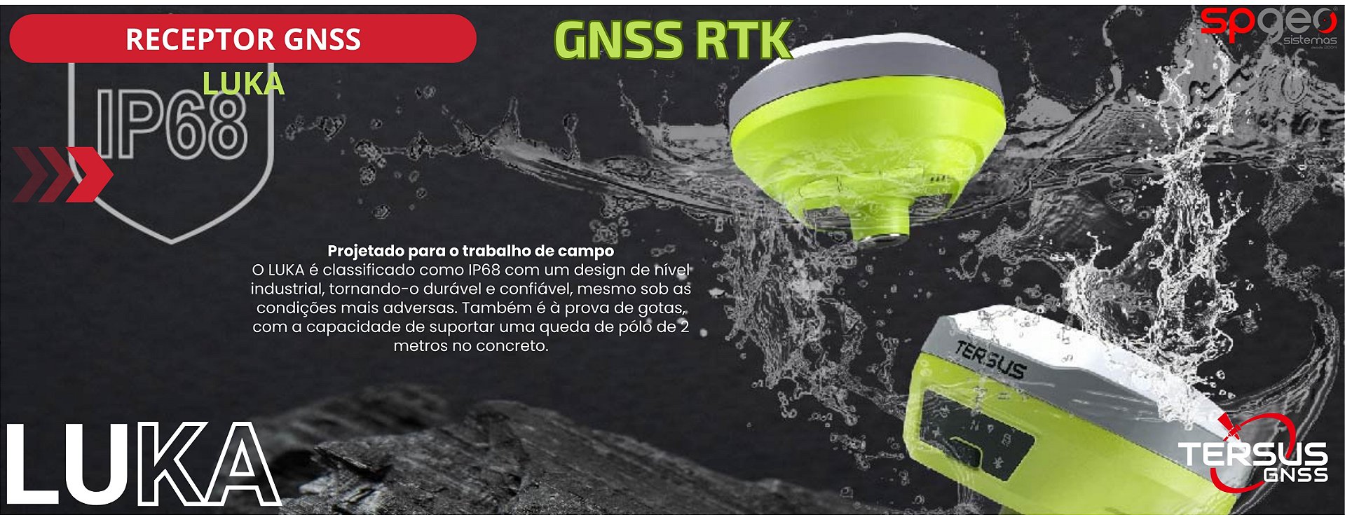 O compacto LUKA é um receptor GNSS RTK com IMU integrado e compensação de inclinação sem necessidade de nivelamento, ideal para uso em campo intensivo. Mede apenas 132 × 68 mm, pesa cerca de 827 g e inclui rádio interno, 4G, Wi‑Fi e bateria de longa duração .