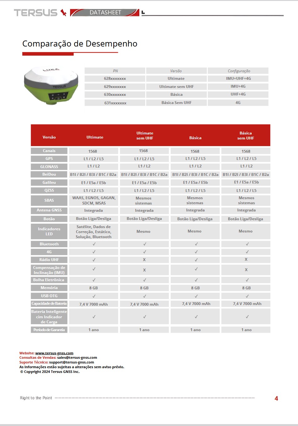 Rápido "FIX" RTK: Suporte a 1568 canais GNSS multi‑constelação; posição em segundos, precisão centimétrica;